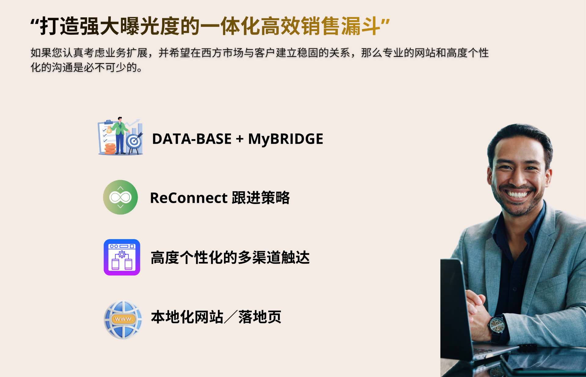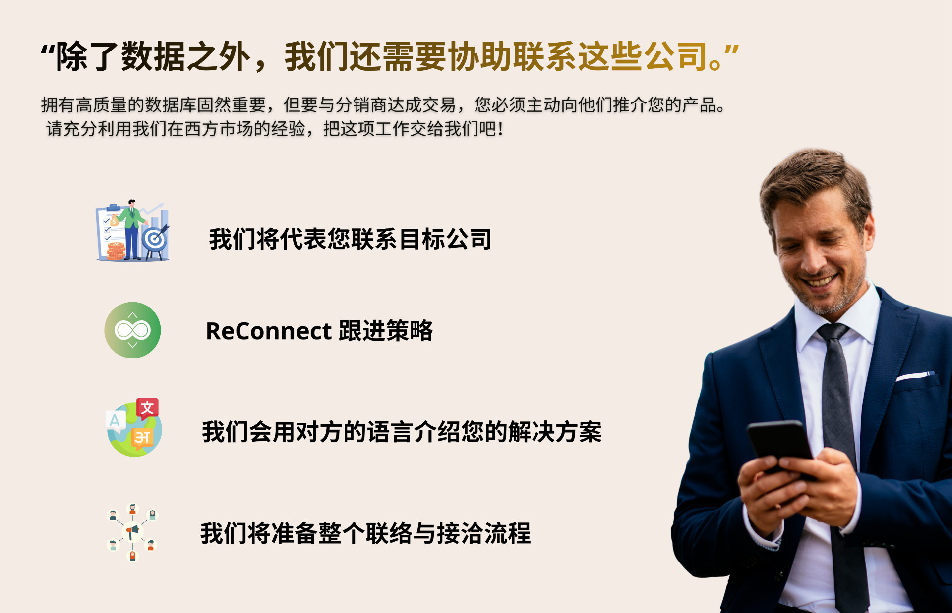 我们的服务是专门为 B2B(企业对企业)模式设计、测试和优化的,旨在实现最强效果。
