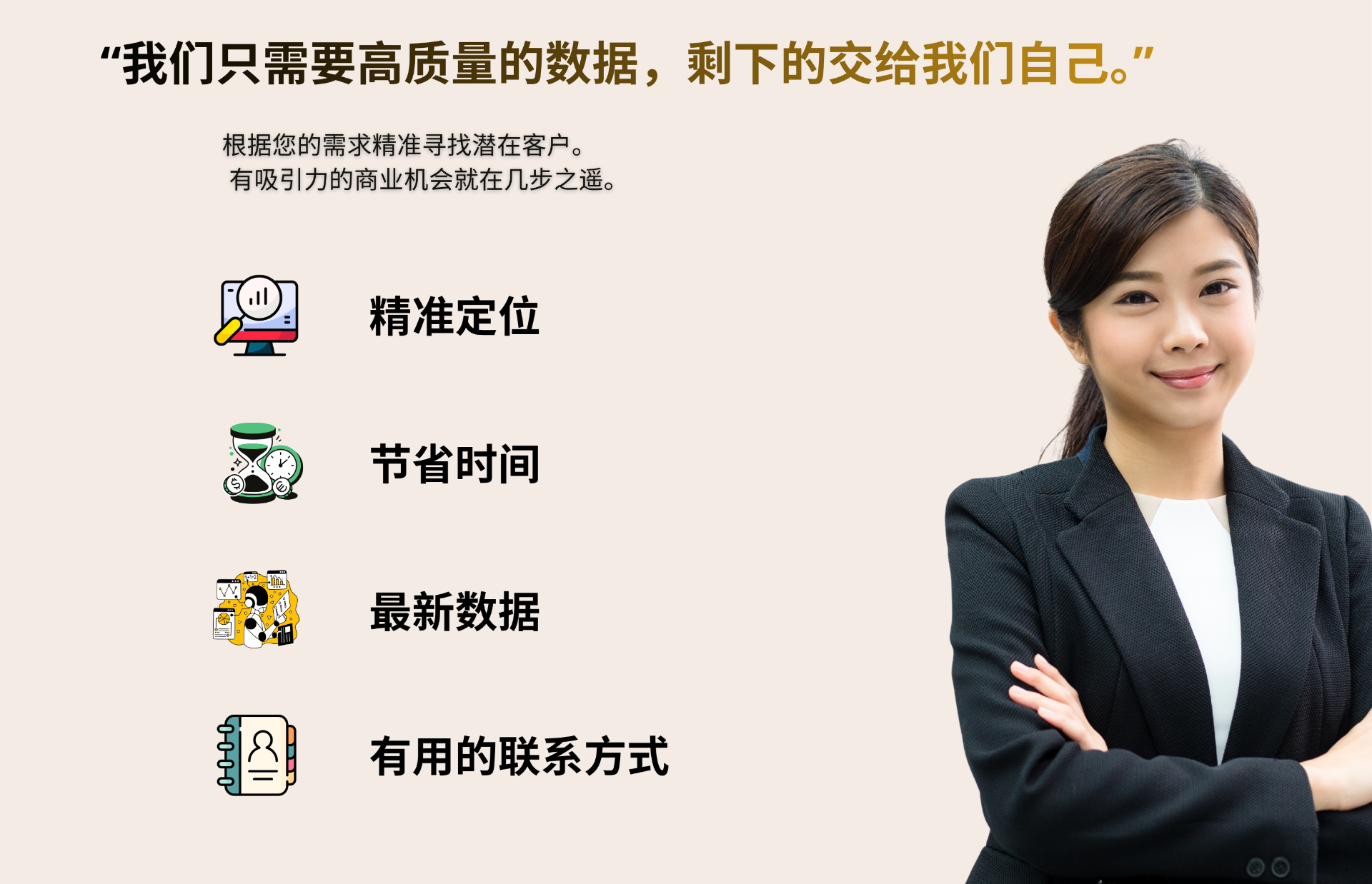 在我们的支持下,节省时间和成本——以最快、最高效的方式触达您的未来客户和供应商。